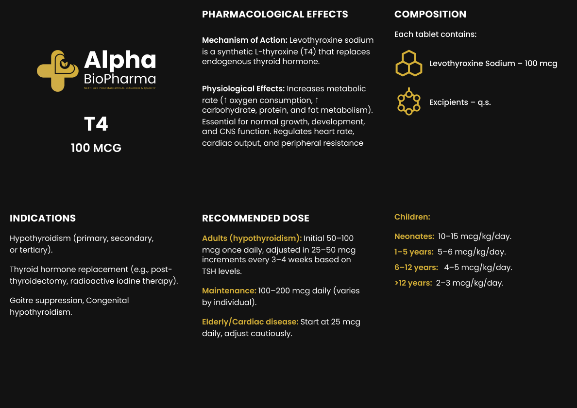T4 wordt bij voorkeur ’s ochtends op een lege maag ingenomen voor maximale opname. Het is belangrijk om de dosering langzaam op te bouwen en correct af te bouwen om de natuurlijke schildklierfunctie niet te verstoren.